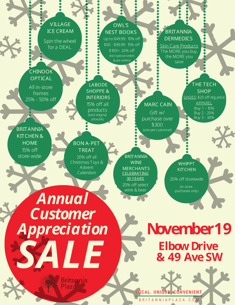 Come visit Britannia Plaza for a unique shopping experience! Made up of small business owners who shop the world bringing exciting and unique hand-picked selections to Calgary’s discerning shoppers. Visit today!